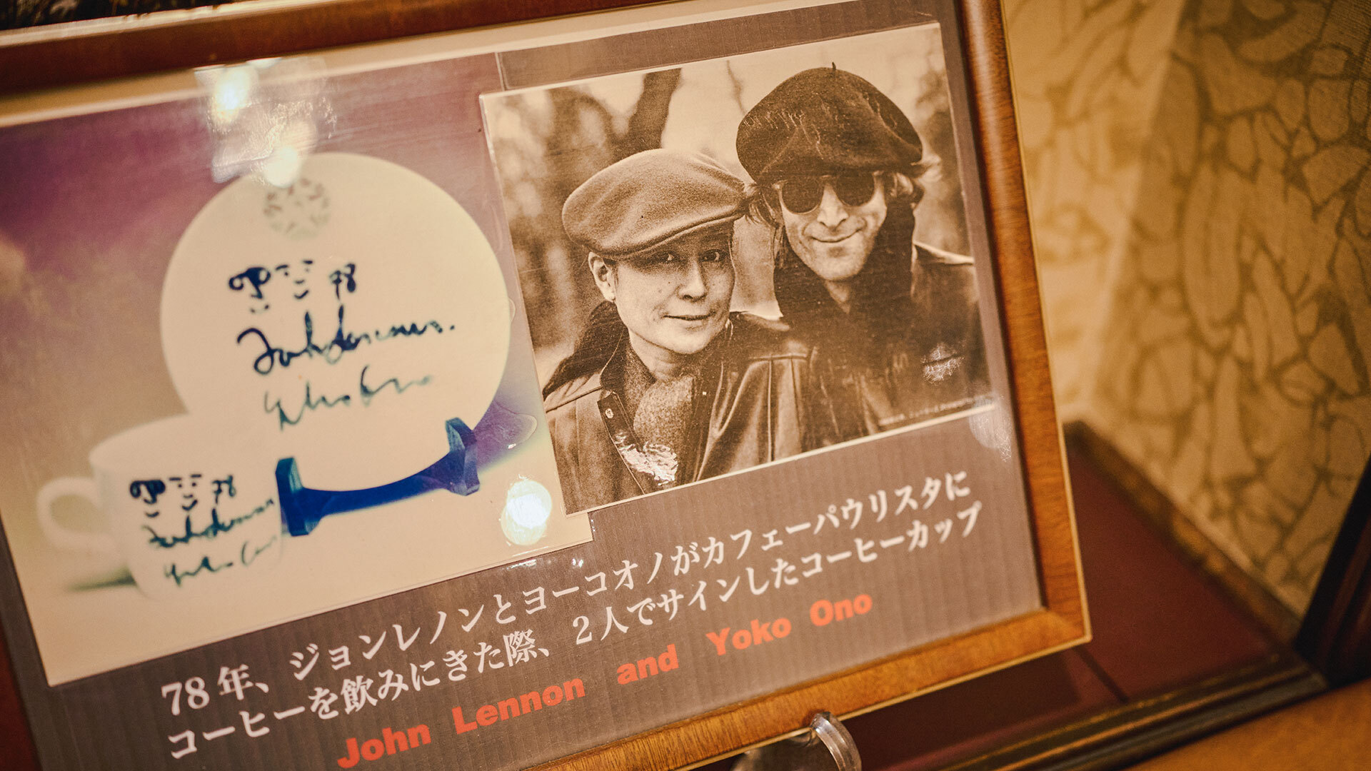 『カフェーパウリスタ』:来店3日目に当時の店長が勇気を振り絞って声をかけ、カップ&ソーサーにジョンのイラストとサインをもらったという
