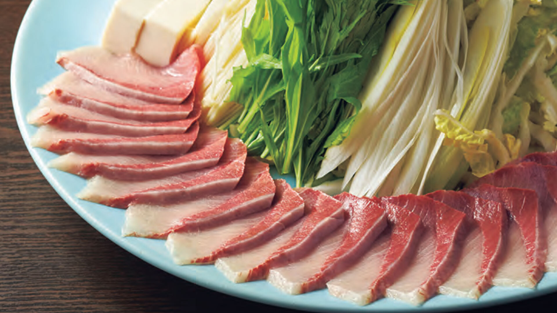 冬のイチオシはもちろん「元祖天然ぶりしゃぶ」¥2,590。白くきらめく脂のサシが美しいブリは、軽く出汁にくぐらせることで甘みや旨みが増します。身は口の中で上品にほどけ、旨みがじんわりと広がり、たっぷりの野菜と食べても脂がのったブリが負けません。