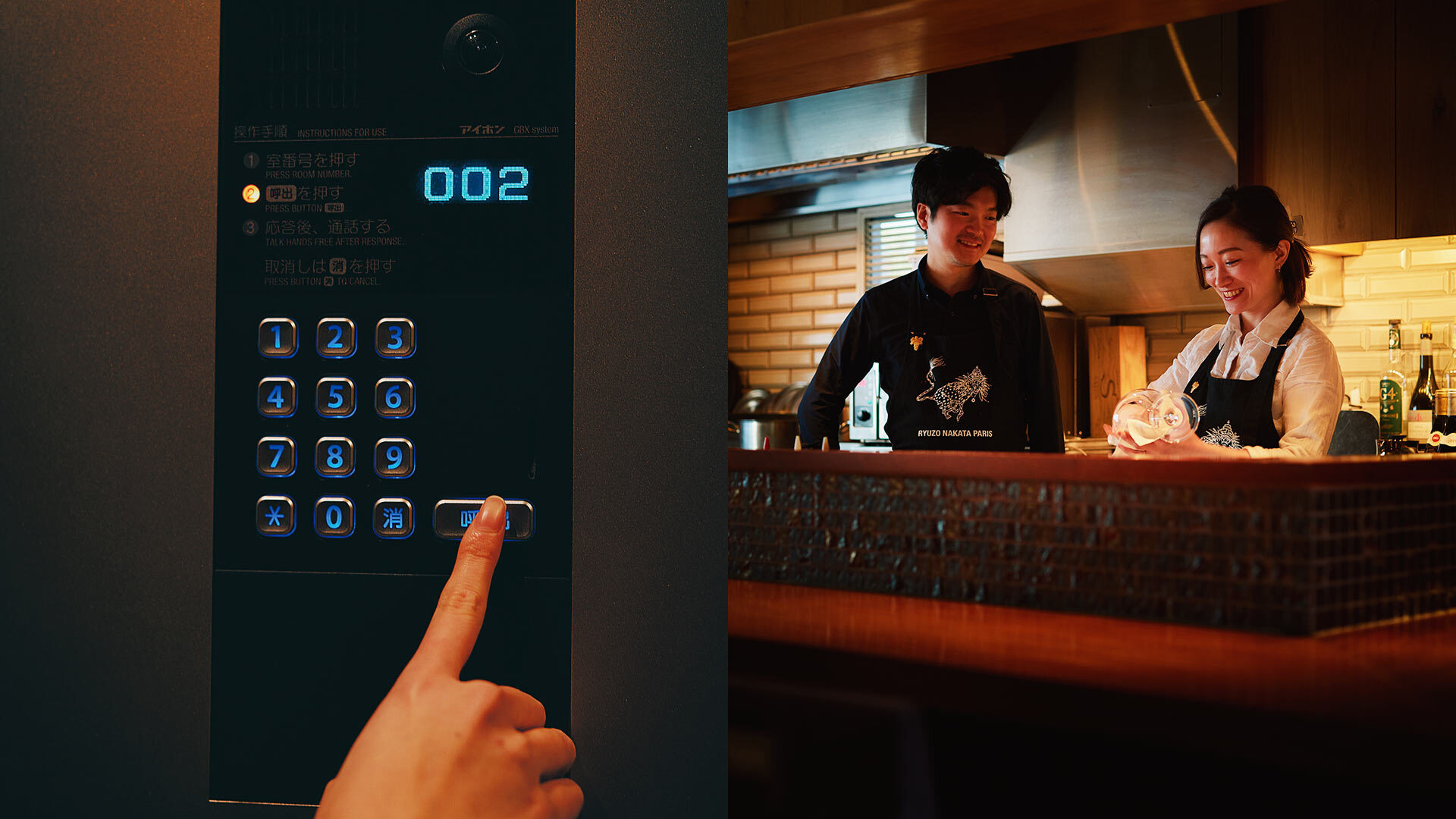 ビルのエントランスにあるインターホンで指定された番号を呼び出し、応答があってから入店する流れとなります。