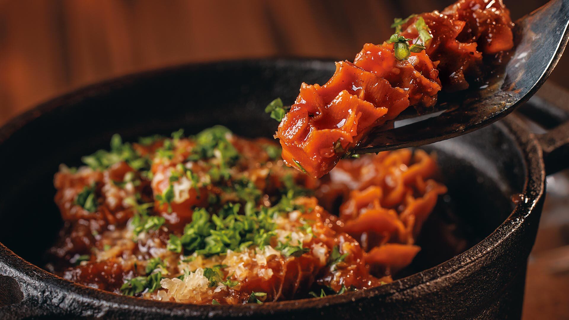 ブイヨンで炊いたトリッパと飴色玉ねぎを合わせた「グラドゥーブル」¥1,650など、星付きフレンチ仕込みの確かな技術が光ります。