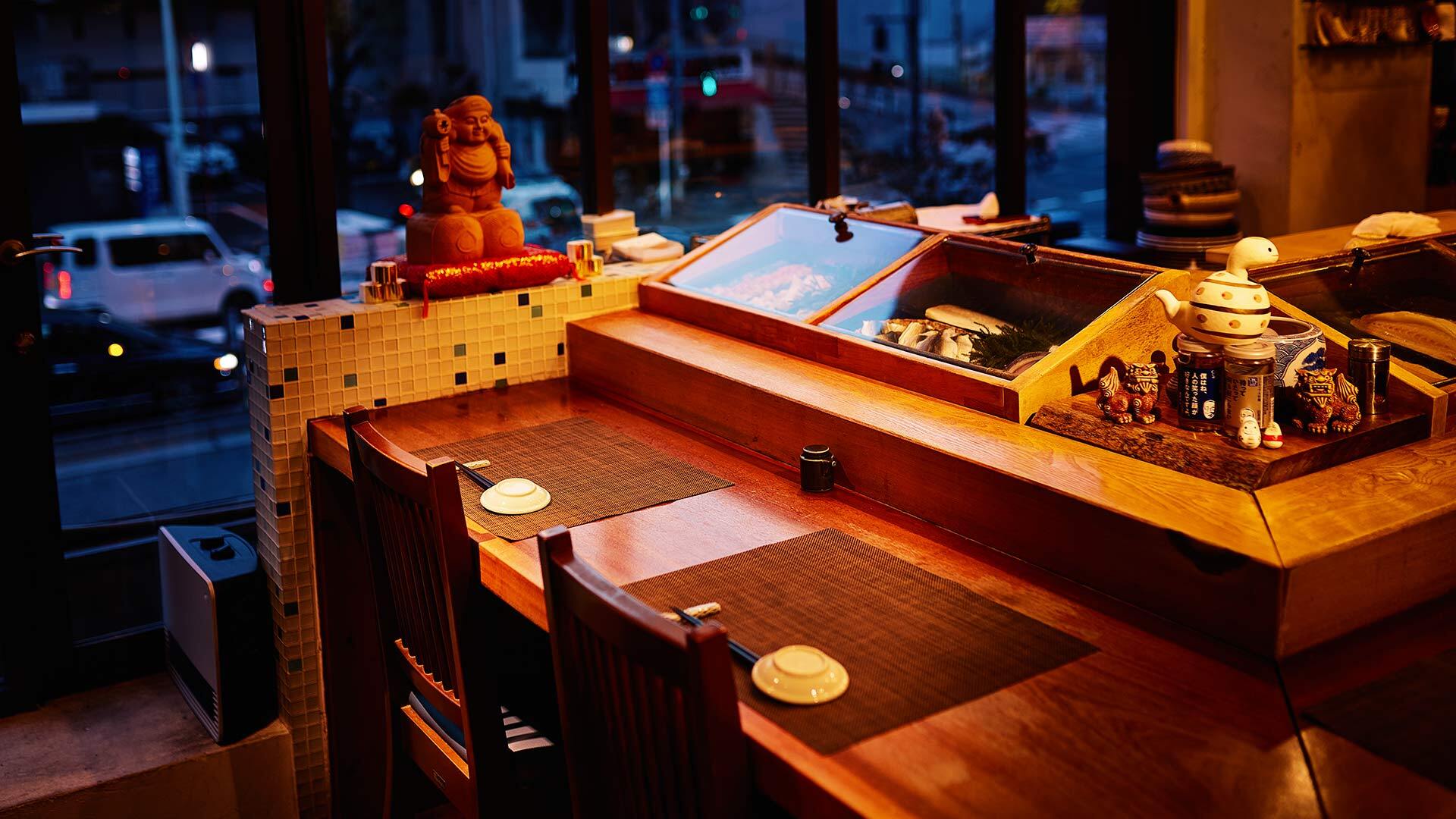 店内は、職人の手さばきを目の前で楽しめるカウンター10席と、ゆったりと過ごせるテーブル14席の計24席で構成されています。
