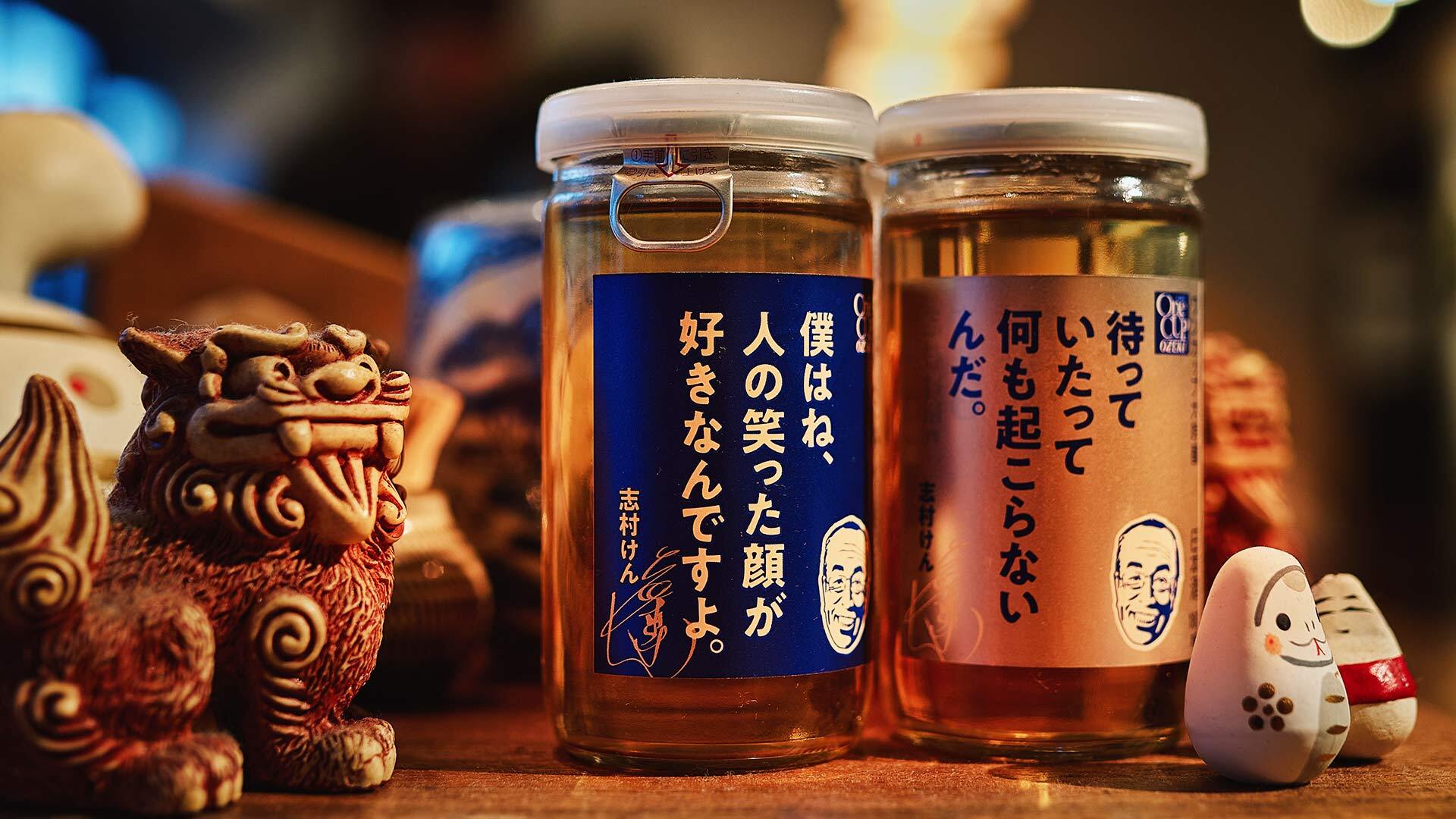 カウンターの一角に置かれている、志村さんのファンの方が寄贈したワンカップ酒。