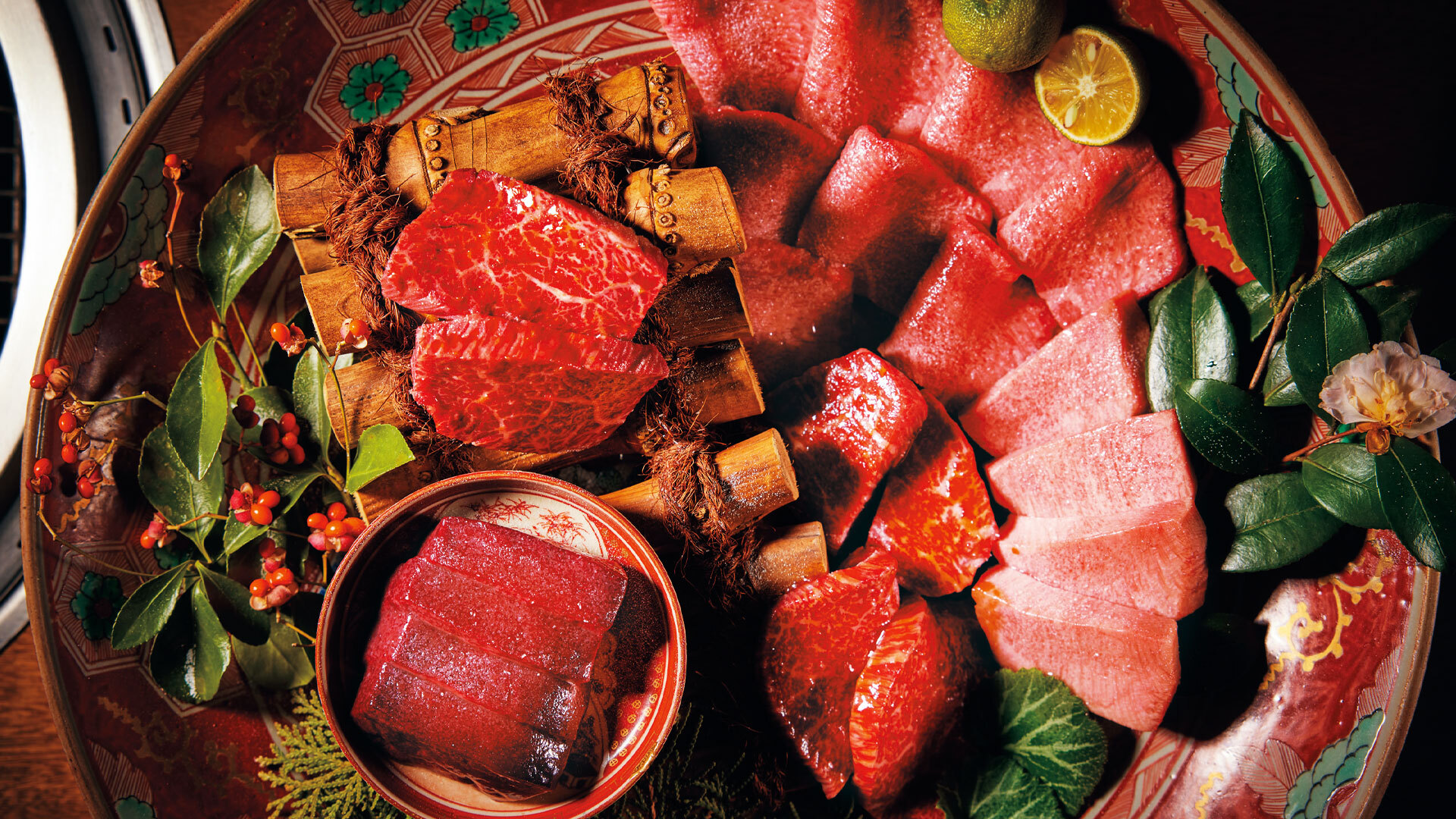 直径40cmの大皿に咲く肉の華!圧倒的な存在感を放つ「老中金襴手盛り」