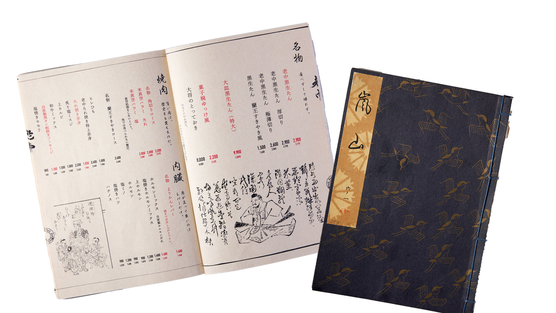 お品書きには「能楽書」という能に関する古い書物の表紙を使うなど、細部にまで日本の伝統文化へのこだわりが息づいています。