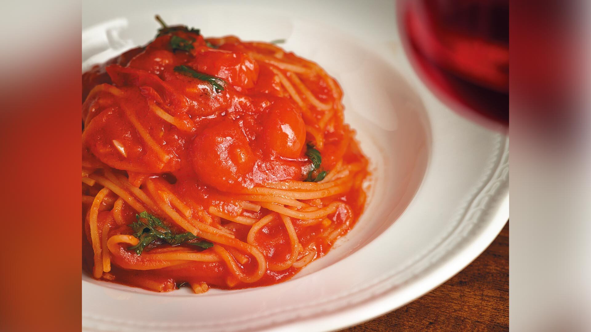 能登の高農園の「フルティカトマト」を使った、トマトの酸味が見事に活きたパスタ「カレティエッラ」(¥2,600)。