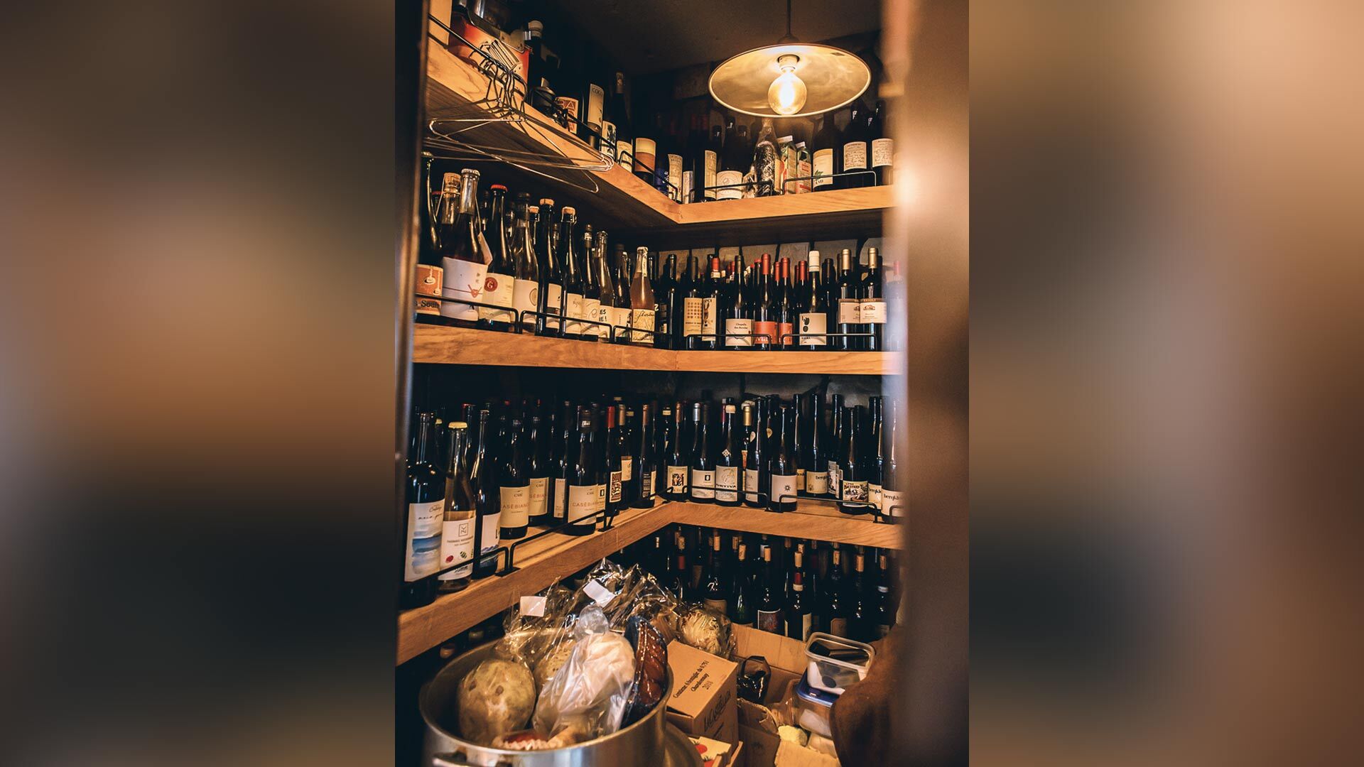 店内に備えた1.5畳ほどのウォークインセラーにはワインがずらりと並び、ゲストが自らボトルを選ぶことも可能です。
