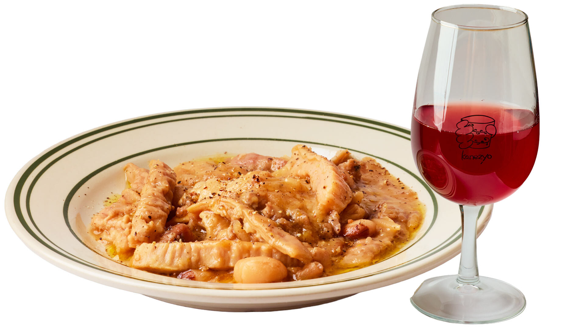鹿児島産のモツと虎豆を煮込んだ「豚テッポウと豆の煮込み」(¥1,300)と、ベリー感ある南仏の赤をペアリング。